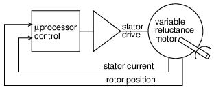 While the variable reluctance motor is simple, even more so than an induction motor, it is difficult to control. Electronic control solves this problem and makes it practical to drive the motor well above and below the power line frequency. A variable reluctance motor driven by a servo, an electronic feedback system, controls torque and speed, minimizing ripple torque. Figure below