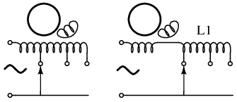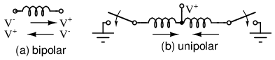 Unipolar drive of center tapped coil at (b), emulates AC current in single coil at (a).