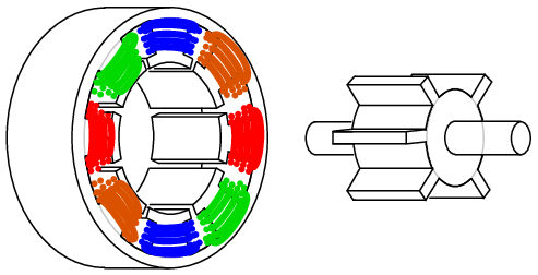 An electronic driven variable reluctance motor (Figure below) resembles a brushless DC motor without a permanent magnet rotor. This makes the motor simple and inexpensive. However, this is offset by the cost of the electronic control, which is not nearly as simple as that for a brushless DC motor.