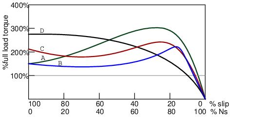 This motor is suited for starting high inertial loads. A high starting resistance makes the high pull out torque available at zero speed. For comparison, a squirrel cage rotor only exhibits pull out (peak) torque at 80% of its synchronous speed.