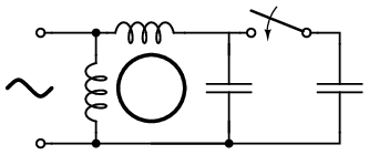 In Figure below a larger capacitor may be used to start a single phase induction motor via the auxiliary winding if it is switched out by a centrifugal switch once the motor is up to speed. Moreover, the auxiliary winding may be many more turns of heavier wire than used in a resistance split-phase motor to mitigate excessive temperature rise. The result is that more starting torque is available for heavy loads like air conditioning compressors. This motor configuration works so well that it is available in multi-horsepower (multi-kilowatt) sizes.