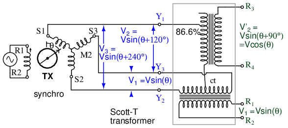 Scott-T converts 3-φ to 2-φ enabling TX to perform resolver function.