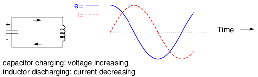 The same is true for the capacitor/inductor circuit. The rate of oscillation is strictly dependent on the sizes of the capacitor and inductor, not on the amount of voltage (or current) at each respective peak in the waves. The ability for such a circuit to store energy in the form of oscillating voltage and current has earned it the name tank circuit. Its property of maintaining a single, natural frequency regardless of how much or little energy is actually being stored in it gives it special significance in electric circuit design.