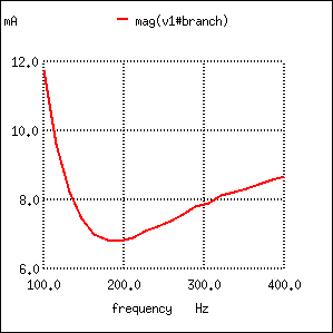 Minimum current at roughly 180 Hz instead of 159.2 Hz!