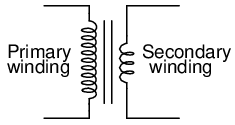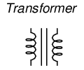 Schematic symbol for transformer consists of two inductor symbols, separated by lines indicating a ferromagnetic core.