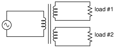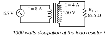 Simply by using primary and secondary coils of less inductance, the load voltage for this heavy load (high current) has been brought back up to nearly ideal levels (9.977 volts). At this point, one might ask, “If less inductance is all that's needed to achieve near-ideal performance under heavy load, then why worry about coupling efficiency at all? If its impossible to build a transformer with perfect coupling, but easy to design coils with low inductance, then why not just build all transformers with low-inductance coils and have excellent efficiency even with poor magnetic coupling?”
