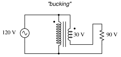 In case you were wondering, it is possible to operate either of these transformer types backwards (powering the secondary winding with an AC source and letting the primary winding power a load) to perform the opposite function: a step-up can function as a step-down and visa-versa. However, as we saw in the first section of this chapter, efficient operation of a transformer requires that the individual winding inductances be engineered for specific operating ranges of voltage and current, so if a transformer is to be used “backwards” like this it must be employed within the original design parameters of voltage and current for each winding, lest it prove to be inefficient (or lest it be damaged by excessive voltage or current!).