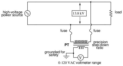 Transformer isolates 10 Vac at V1 from 250 VDC at V2.