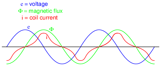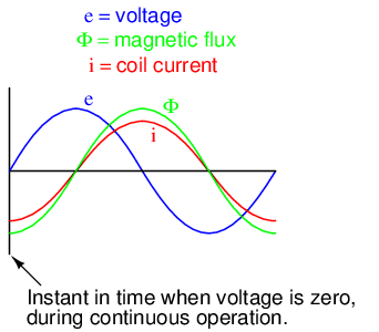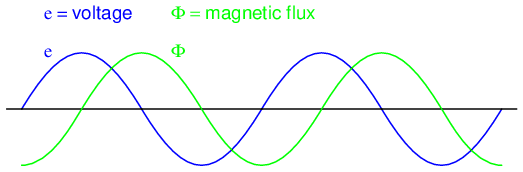 Continuous steady-state operation: Magnetic flux, like current, lags applied voltage by 90o.