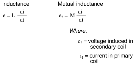 This effect is called mutual inductance: the induction of a voltage in one coil in response to a change in current in the other coil. Like normal (self-) inductance, it is measured in the unit of Henrys, but unlike normal inductance it is symbolized by the capital letter “M” rather than the letter “L”: