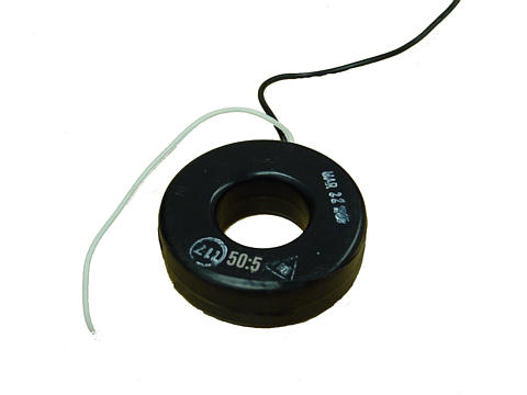 Ferromagnetic core with primary coil (AC driven) and secondary coil.