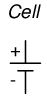 The symbol for a cell is very simple, consisting of one long line and one short line, parallel to each other, with connecting wires: