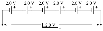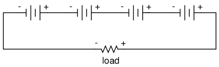 When connecting batteries together to form larger "banks" (a battery of batteries?), the constituent batteries must be matched to each other so as to not cause problems. First we will consider connecting batteries in series for greater voltage: