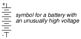 For the sake of convenience, battery symbols are usually limited to four lines, alternating long/short, although the real battery it represents may have many more cells than that. On occasion, however, you might come across a symbol for a battery with unusually high voltage, intentionally drawn with extra lines. The lines, of course, are representative of the individual cell plates: