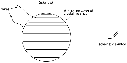 Another type of "battery" is the solar cell, a by-product of the semiconductor revolution in electronics. The photoelectric effect, whereby electrons are dislodged from atoms under the influence of light, has been known in physics for many decades, but it has only been with recent advances in semiconductor technology that a device existed capable of harnessing this effect to any practical degree. Conversion efficiencies for silicon solar cells are still quite low, but their benefits as power sources are legion: no moving parts, no noise, no waste products or pollution (aside from the manufacture of solar cells, which is still a fairly "dirty" industry), and indefinite life.