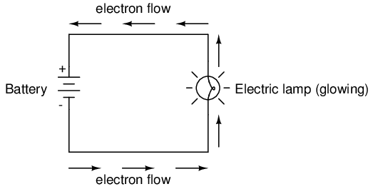 An electric circuit is formed when a conductive path is created to allow free electrons to continuously move. This continuous movement of free electrons through the conductors of a circuit is called a current, and it is often referred to in terms of "flow," just like the flow of a liquid through a hollow pipe.