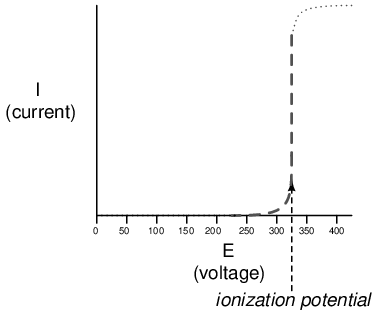The graph shown is approximate for a small air gap (less than one inch). A larger air gap would yield a higher ionization potential, but the shape of the I/E curve would be very similar: practically no current until the ionization potential was reached, then substantial conduction after that.