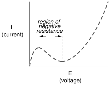 Other electrical components exhibit even stranger current/voltage curves than this. Some devices actually experience a decrease in current as the applied voltage increases. Because the slope of the current/voltage for this phenomenon is negative (angling down instead of up as it progresses from left to right), it is known as negative resistance.