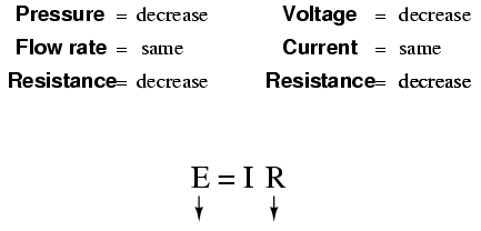 If the pressure stays the same and the resistance increases (making it more difficult for the water to flow), then the flow rate must decrease: