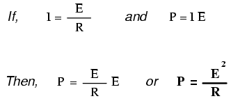 Inserting the known quantities of voltage (E) and current (I) into these two equations, we can determine circuit resistance (R) and power dissipation (P):