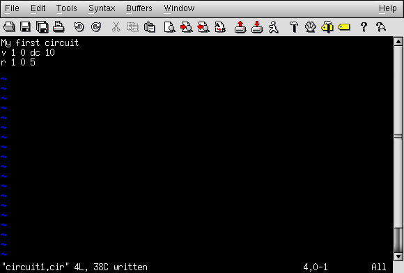 Creating a text file in a computer involves the use of a program called a text editor. Similar to a word processor, a text editor allows you to type text and record what you've typed in the form of a file stored on the computer's hard disk. Text editors lack the formatting ability of word processors (no italic, bold, or underlined characters), and this is a good thing, since programs such as SPICE wouldn't know what to do with this extra information. If we want to create a plain-text file, with absolutely nothing recorded except the keyboard characters we select, a text editor is the tool to use.