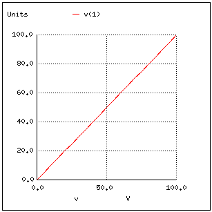 Note how Nutmeg plots the resistor voltage v(1) (voltage between node 1 and the implied reference point of node 0) as a line with a positive slope (from lower-left to upper-right).