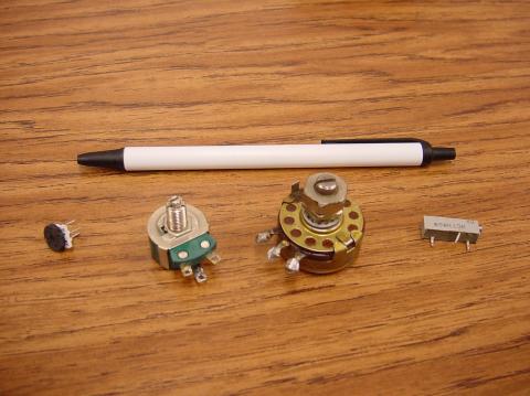 Variable resistors must have some physical means of adjustment, either a rotating shaft or lever that can be moved to vary the amount of electrical resistance. Here is a photograph showing some devices called potentiometers, which can be used as variable resistors: