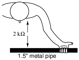 Note the resistance values of the two conditions involving a 1.5 inch metal pipe. The resistance measured with two hands grasping the pipe is exactly one-half the resistance of one hand grasping the pipe.