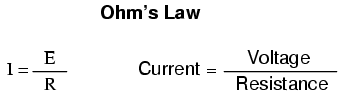 Taking Ohm's Law for voltage, current, and resistance, and expressing it in terms of current for a given voltage and resistance, we have this equation: