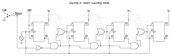 Here, shown in the "down" counting mode, with the same grey coloring representing disabled circuitry: