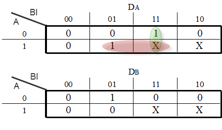 That said, the input functions for our D - Flip Flops are the following: (Figure below)