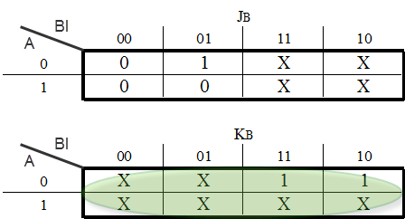 If we chose to use JK - Flip Flops our functions would be the following: (Figure below)