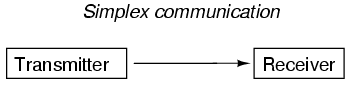 With simplex communication, all data flow is unidirectional: from the designated transmitter to the designated receiver. BogusBus is an example of simplex communication, where the transmitter sent information to the remote monitoring location, but no information is ever sent back to the water tank. If all we want to do is send information one-way, then simplex is just fine. Most applications, however, demand more: