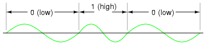 Due to the practical problems of getting the low/high frequency sine waves to begin and end at the zero crossover points for any given combination of 0's and 1's, a variation of FSK called phase-continuous FSK is sometimes used, where the consecutive combination of a low/high frequency represents one binary state and the combination of a high/low frequency represents the other. This also makes for a situation where each bit, whether it be 0 or 1, takes exactly the same amount of time to transmit along the network: