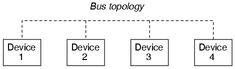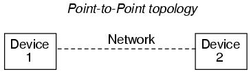 For the sake of simplicity, the network wiring is symbolized as a single line between the two devices. In actuality, it may be a twisted pair of wires, a coaxial cable, an optical fiber, or even a seven-conductor BogusBus. Right now, we're merely focusing on the "shape" of the network, technically known as its topology.