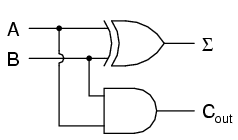 The Σ symbol represents the "sum" output of the half-adder, the sum's least significant bit (LSB). Cout represents the "carry" output of the half-adder, the sum's most significant bit (MSB).