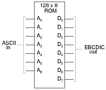 Again, all that is required is for the ROM chip to be properly programmed with the necessary data so that each valid ASCII input will produce a corresponding EBCDIC output code.