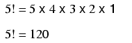 Denoted by the symbol "!" after an integer; the product of that integer and all integers in descent to 1.