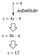 Next, we'll substitute this definition of z in terms of y where we see z in the other equation: