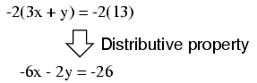 If we could only turn the y term in the lower equation into a - 2y term, so that when the two equations were added together, both y terms in the equations would cancel, leaving us with only an x term, this would bring us closer to a solution. Fortunately, this is not difficult to do. If we multiply each and every term of the lower equation by a -2, it will produce the result we seek: