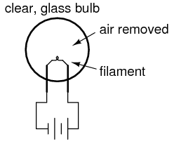 Edison was able to achieve his success by placing his filament (made of carbonized sewing thread) inside of a clear glass bulb from which the air had been forcibly removed. In this vacuum, the filament could glow at white-hot temperatures without being consumed by combustion: