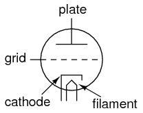 The cathode was a thin metal cylinder fitting snugly over the twisted wire of the filament. The cathode cylinder would be heated by the filament wire enough to freely emit electrons, without the undesirable side effects of actually carrying the heating current as the filament wire had to. The tube symbol for a triode with an indirectly-heated cathode looks like this: