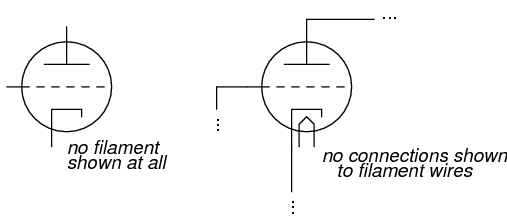 Since the filament is necessary for all but a few types of vacuum tubes, it is often omitted in the symbol for simplicity, or it may be included in the drawing but with no power connections drawn to it: