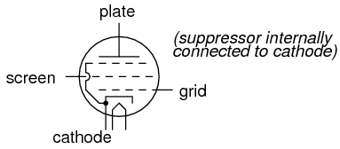 Another strategy for addressing the problem of secondary electrons being attracted by the screen was the addition of a fifth wire element to the tube structure: a suppressor. These five-element tubes were naturally called pentodes.