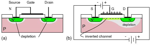 Graphene sheets may be cut into transistor structures by lithographic techniques. The transistors bear some resemblance to a MOSFET. A gate capacitively coupled to a graphene channel controls conduction.