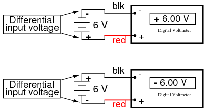 Just as a voltmeter will only display the voltage between its two test leads, an ideal differential amplifier only amplifies the potential difference between its two input connections, not the voltage between any one of those connections and ground. The output polarity of a differential amplifier, just like the signed indication of a digital voltmeter, depends on the relative polarities of the differential voltage between the two input connections.