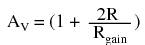 We can change the overall voltage gain of this circuit, overall, just by adjusting the values of R1 and R2 (changing the ratio of output voltage that is fed back to the inverting input). Gain can be calculated by the following formula: